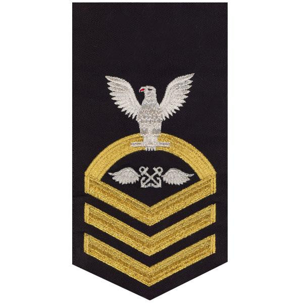 Navy rating badge E-7 seaworthy-all machine made eagle and center with embroidered gold embroidered on blue (AB) aviation boatswain.