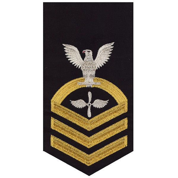 Navy rating badge E-7 seaworthy-all machine made eagle and center with embroidered gold embroidered on blue (AD) aviation machinist.