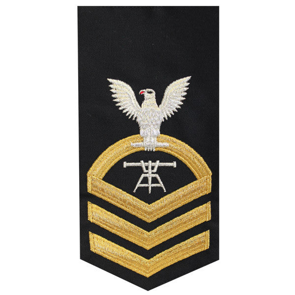 Navy rating badge E-7 seaworthy-all machine made eagle and center with embroidered gold embroidered on blue ft fire control tech.