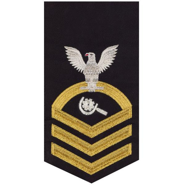 Navy rating badge E-7 seaworthy-all machine made eagle and center with embroidered gold embroidered on blue mr machine repair.