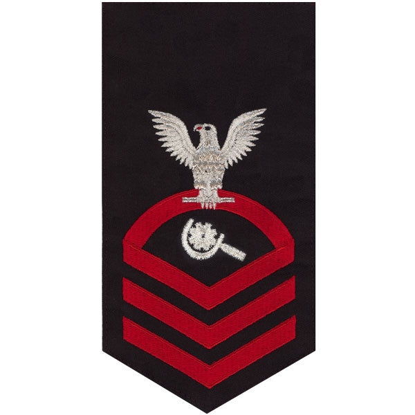 Navy rating badge E-7 seaworthy embroidered eagle and center with red chevrons on blue mr machine repair - individually priced.