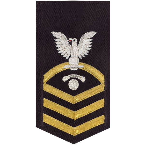 Navy rating badge E-7 Vanchief silver eagle with gold lace chevrons on blue ic inter communication electrician - individually priced. Please allow 2-4 weeks for delivery.
