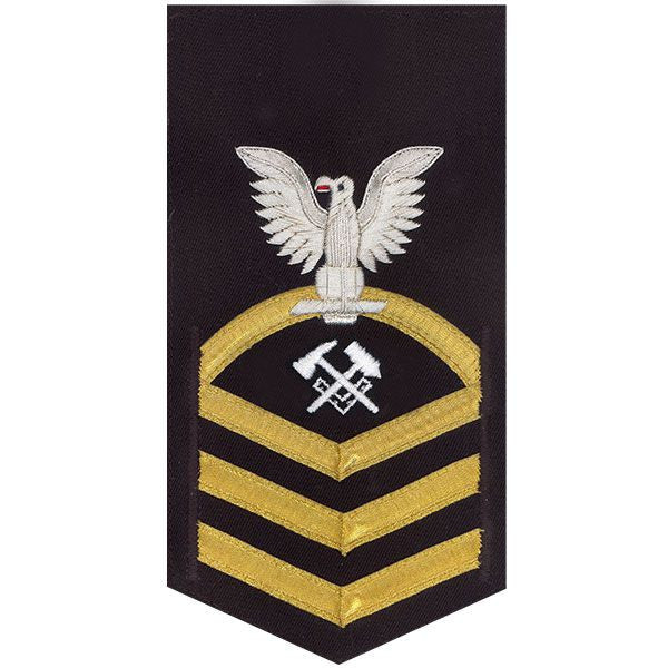 Navy rating badge E-7 Vanchief silver eagle with gold lace chevrons on blue ht hull maintenance technician - individually priced. Please allow 2-4 weeks for delivery.