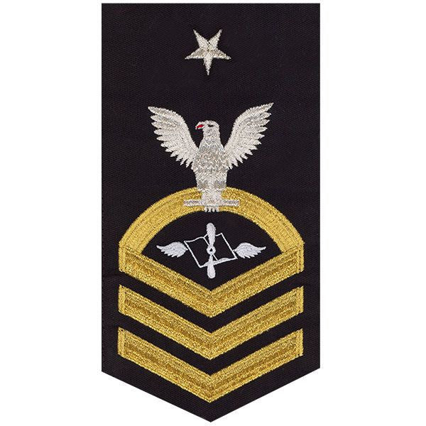 Navy rating badge E-8 seaworthy-all machine made eagle and center with embroidered gold embroidered on blue (AZ) aviation maintenance admin.