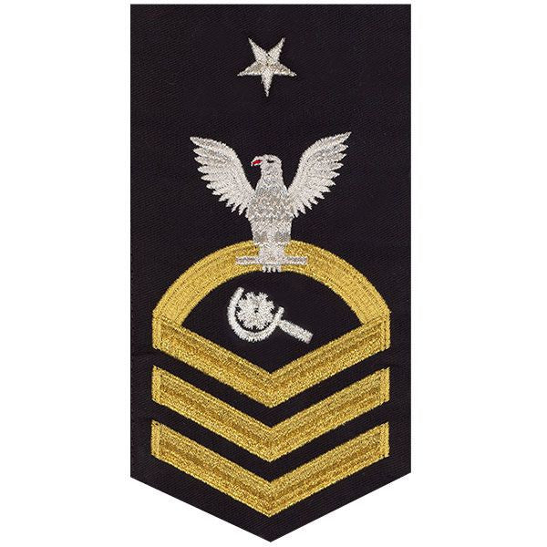 Navy rating badge E-8 seaworthy-all machine made eagle and center with embroidered gold embroidered on blue mr machine repair.