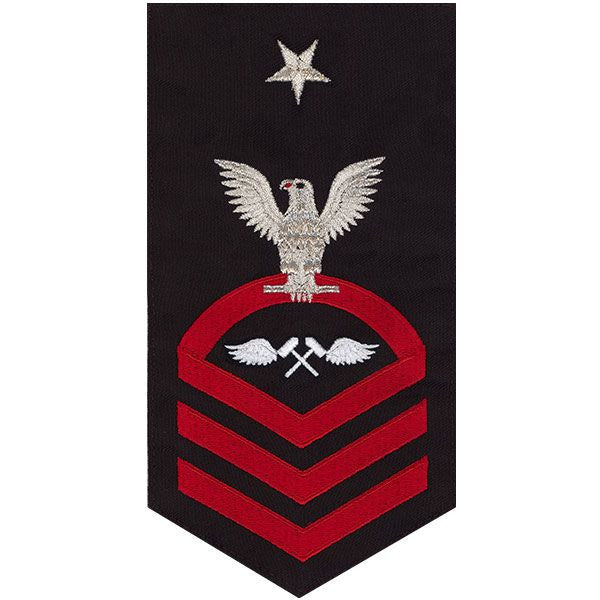 Navy rating badge E-8 seaworthy embroidered eagle and center with red chevrons on blue (AM) aviation structure mechanic - individually priced.