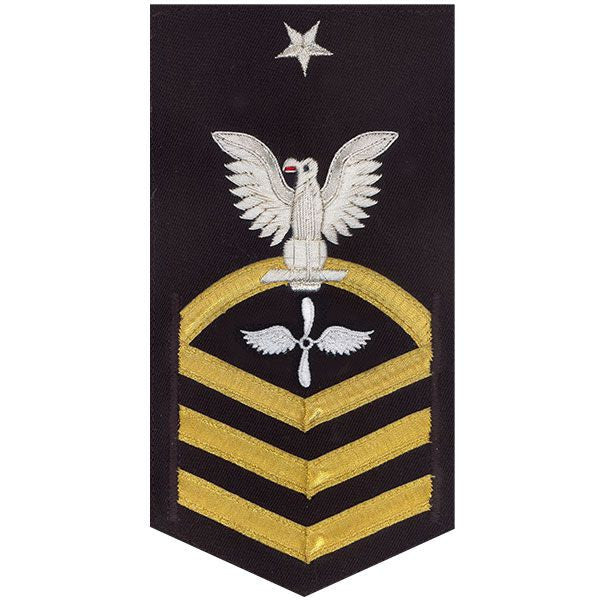 Navy rating badge E-8 Vanchief silver eagle with gold lace chevrons on blue (AD) - individually priced. Please allow 2-4 weeks for delivery.