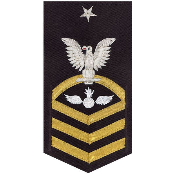 Navy rating badge E-8 Vanchief silver eagle with gold lace chevrons on blue (AO) - individually priced. Please allow 2-4 weeks for delivery.