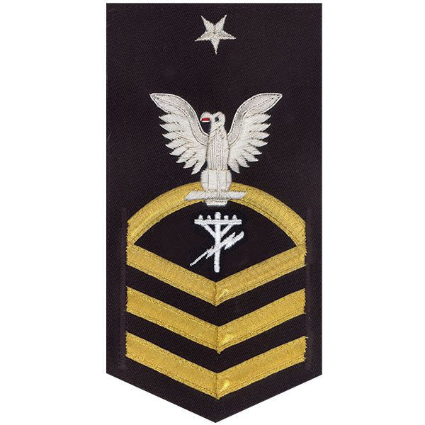 Navy rating badge E-8 Vanchief silver eagle with gold lace chevrons on blue ce construction electrician - individually priced. Please allow 2-4 weeks for delivery.