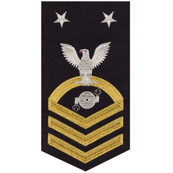 Navy rating badge E-9 seaworthy-all machine made eagle and center with embroidered gold embroidered on blue (BT) boiler technician.