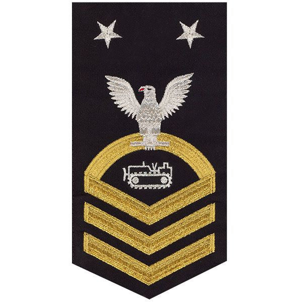 Navy rating badge E-9 seaworthy-all machine made eagle and center with embroidered gold embroidered on blue eo equipment operator.