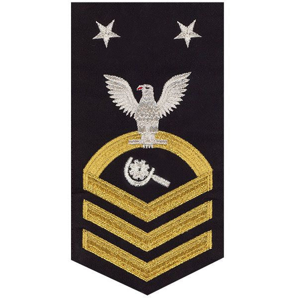 Navy rating badge E-9 seaworthy-all machine made eagle and center with embroidered gold embroidered on blue mr machine repair.