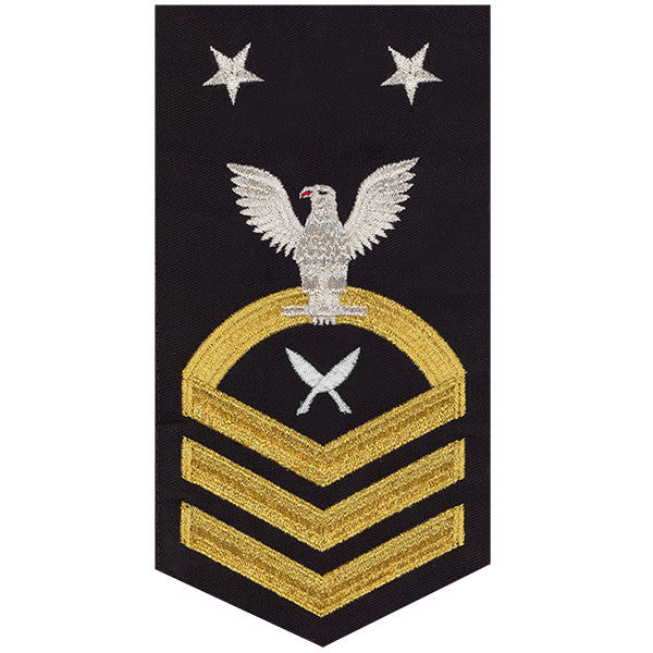 Navy rating badge E-9 seaworthy-all machine made eagle and center with embroidered gold embroidered on blue (YN) Yeoman.