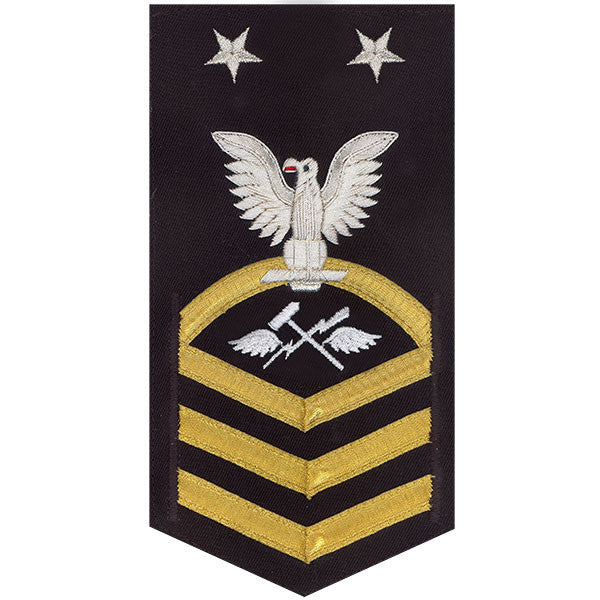Navy rating badge E-9 Vanchief silver eagle with gold lace chevrons on blue (AS) aviation support equipment - individually priced. Please allow 2-4 weeks for delivery.