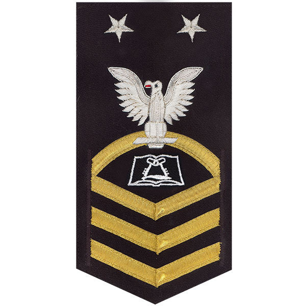 Navy rating badge E-9 Vanchief silver eagle with gold lace chevrons on blue cs culinary specialist - individually priced. Please allow 2-4 weeks for delivery.