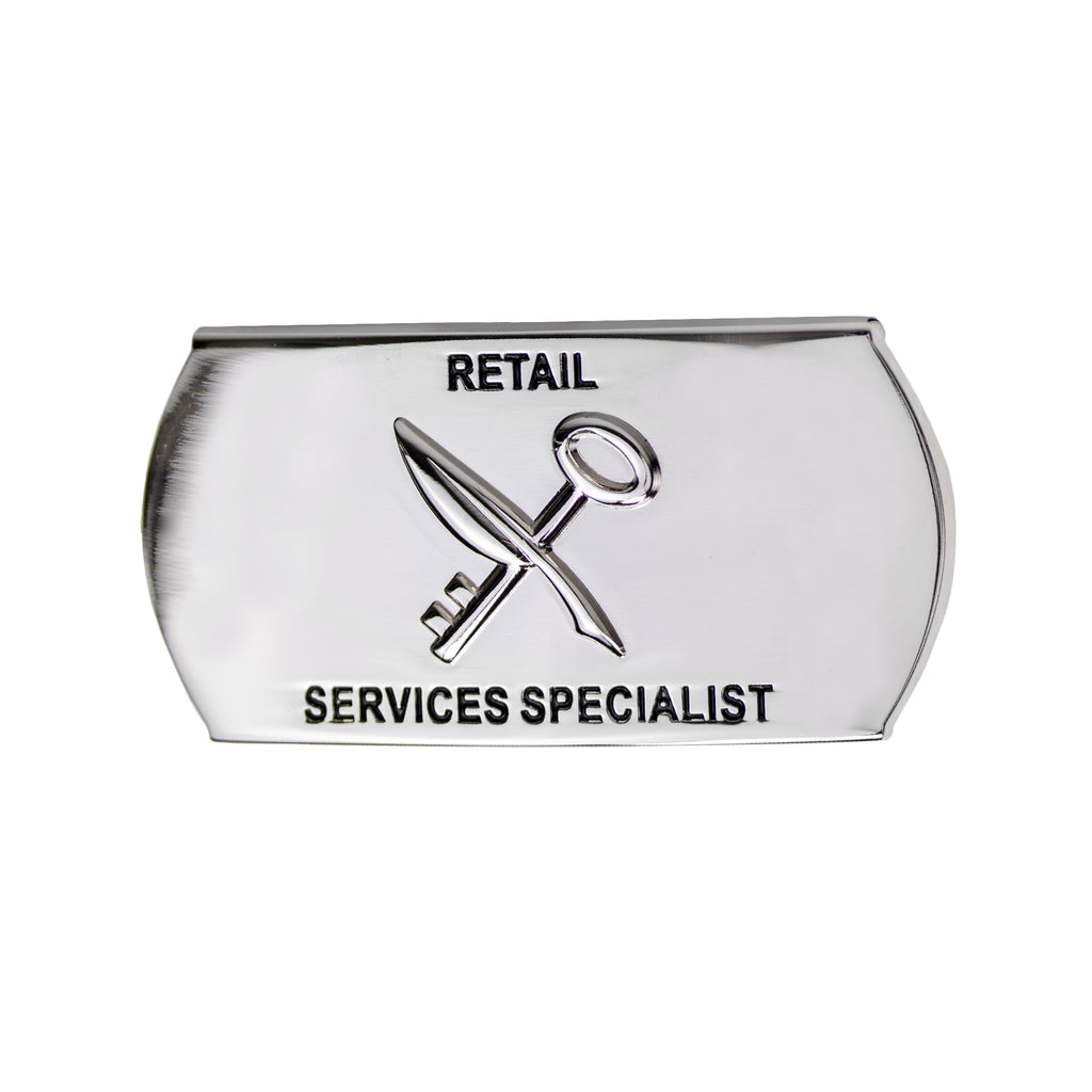 Navy Enlisted Specialty Belt Buckle: Retail Services Specialist: RS
