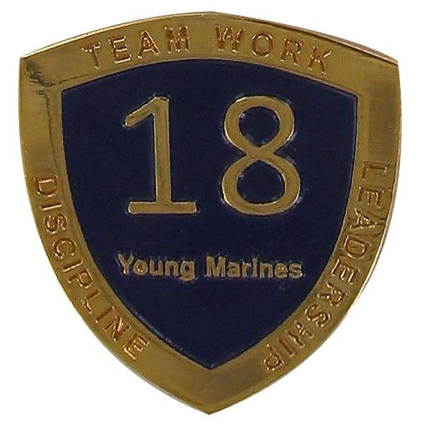 Young Marine's Service Pins denotes eighteen years of service within the Young Marine's.
