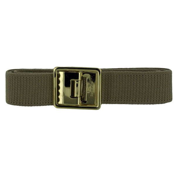 Young Marine's khaki cotton belt with 24K Gold Plated open face buckle and tip with elastic boot bands.